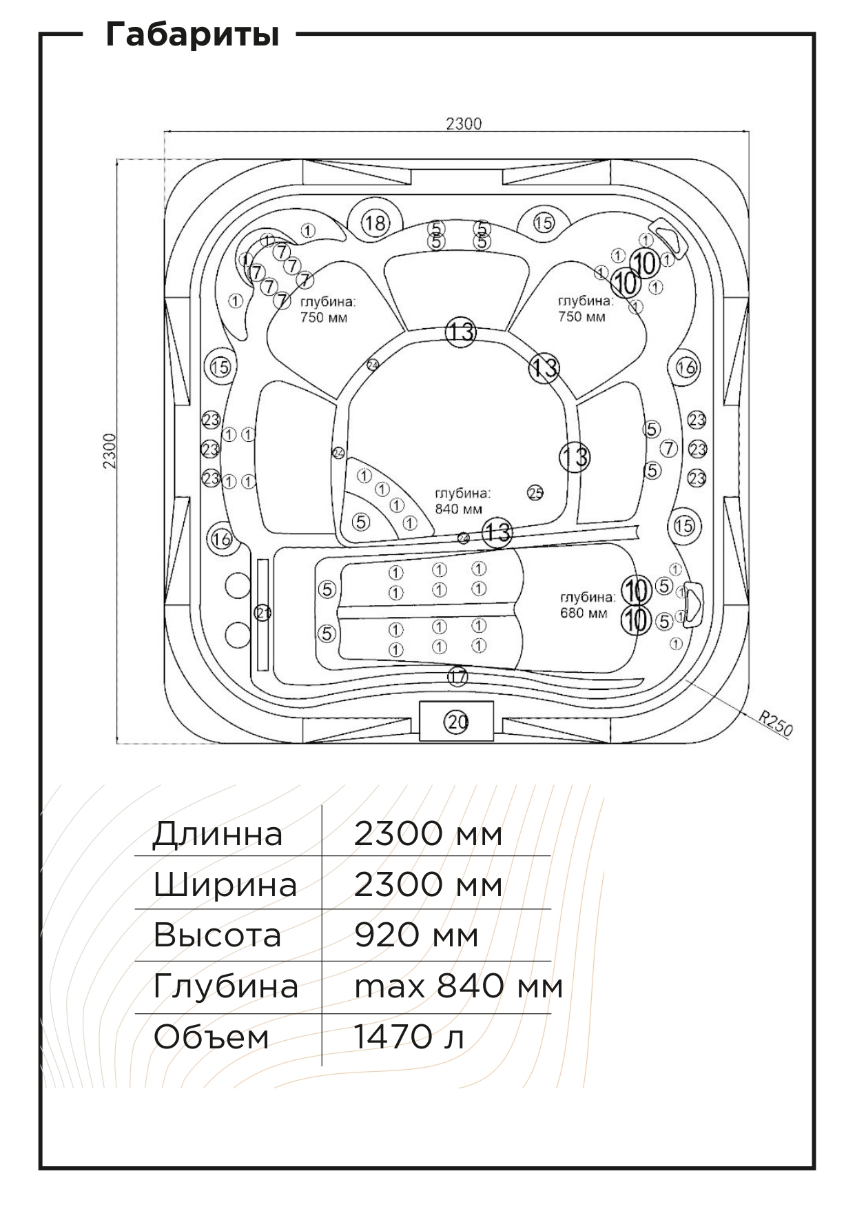 Минибассейн «Март» 2300×2300×920 мм: квадратный остров релакса с премиальными технологиями прямо у вас дома.