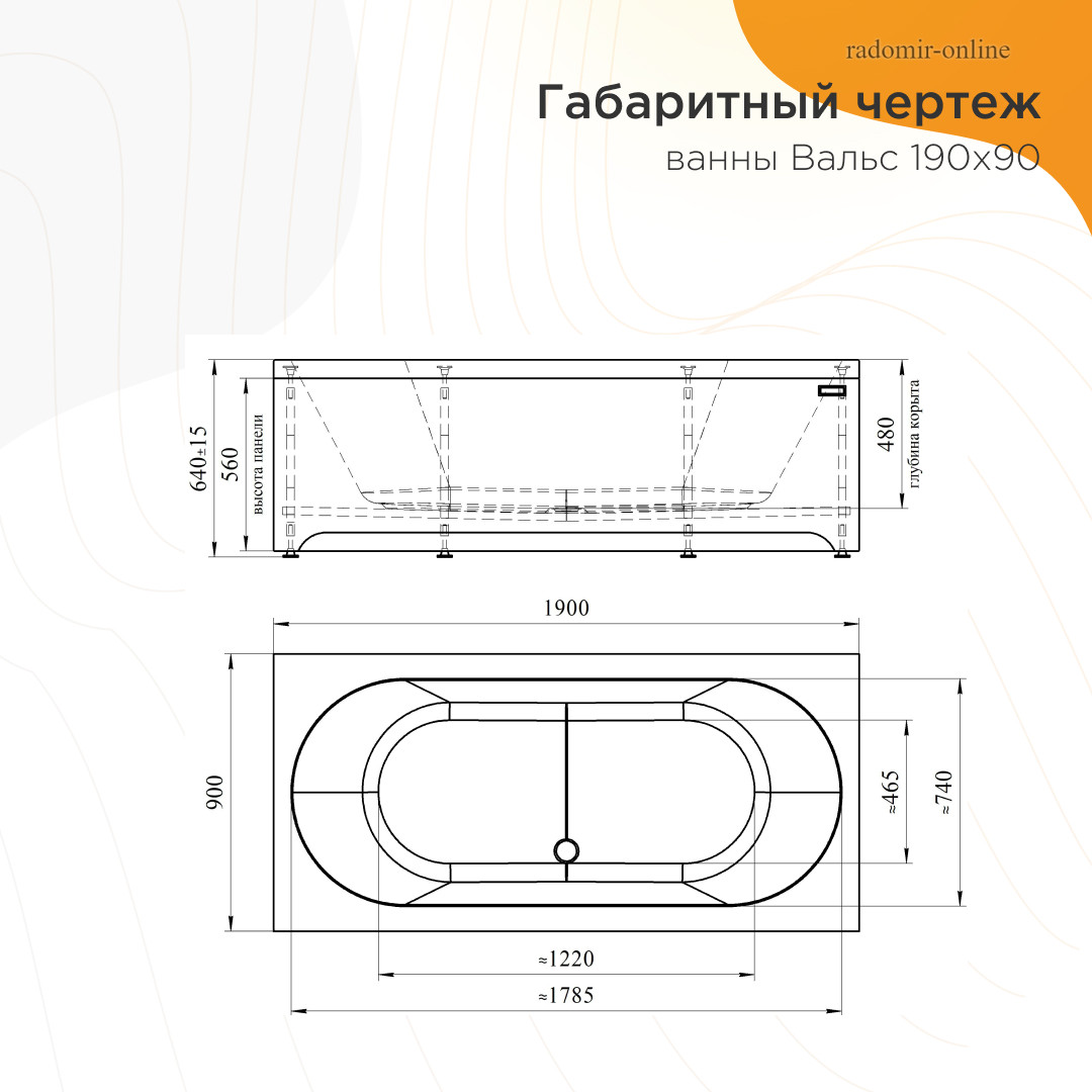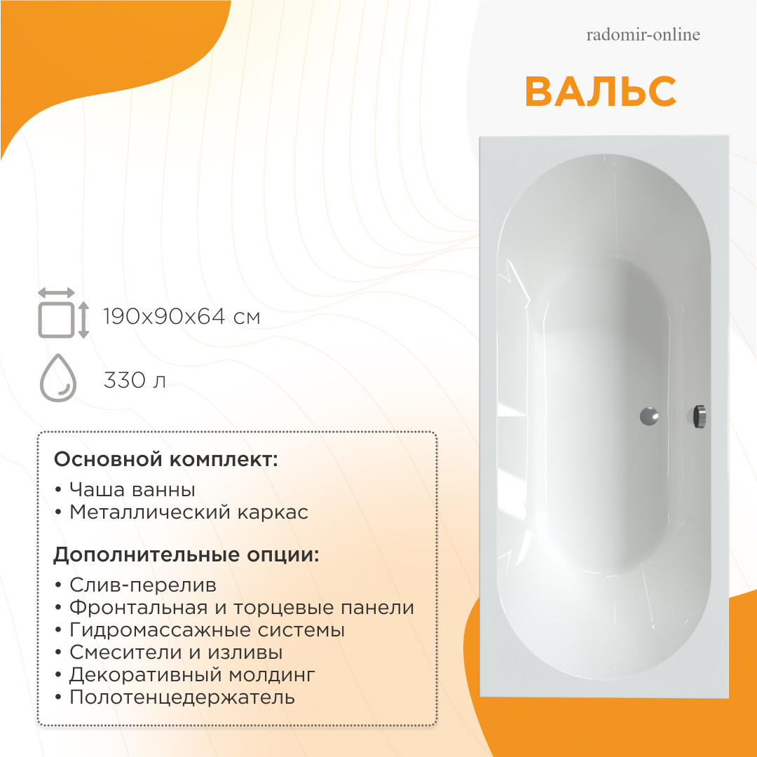 Теги: радомир, акриловая ванна, прямоугольная, пристенная, длина 190 см, ширина 90 см, вальс,