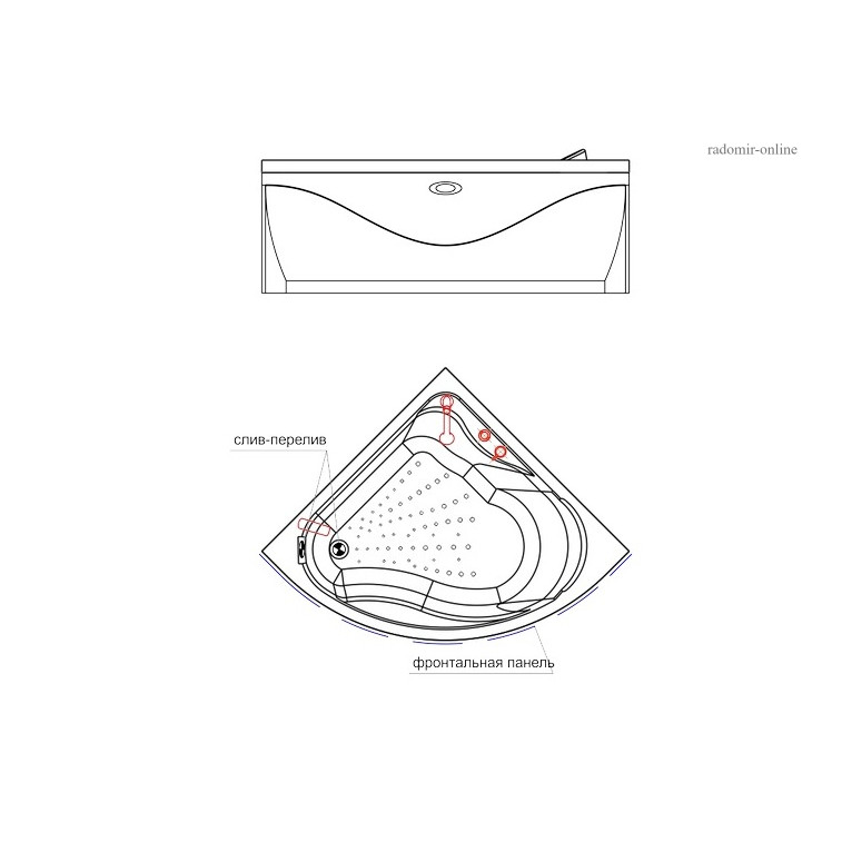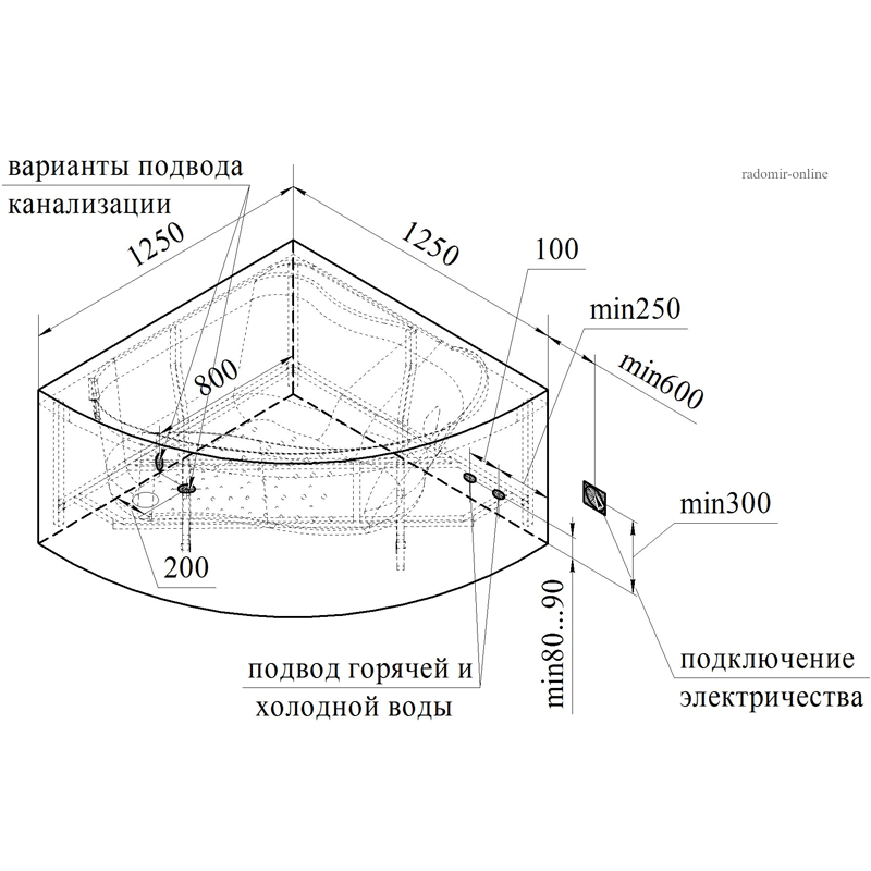 Теги: радомир, акриловая ванна, угловая, длина 125 см, ширина 125 см, альтея,