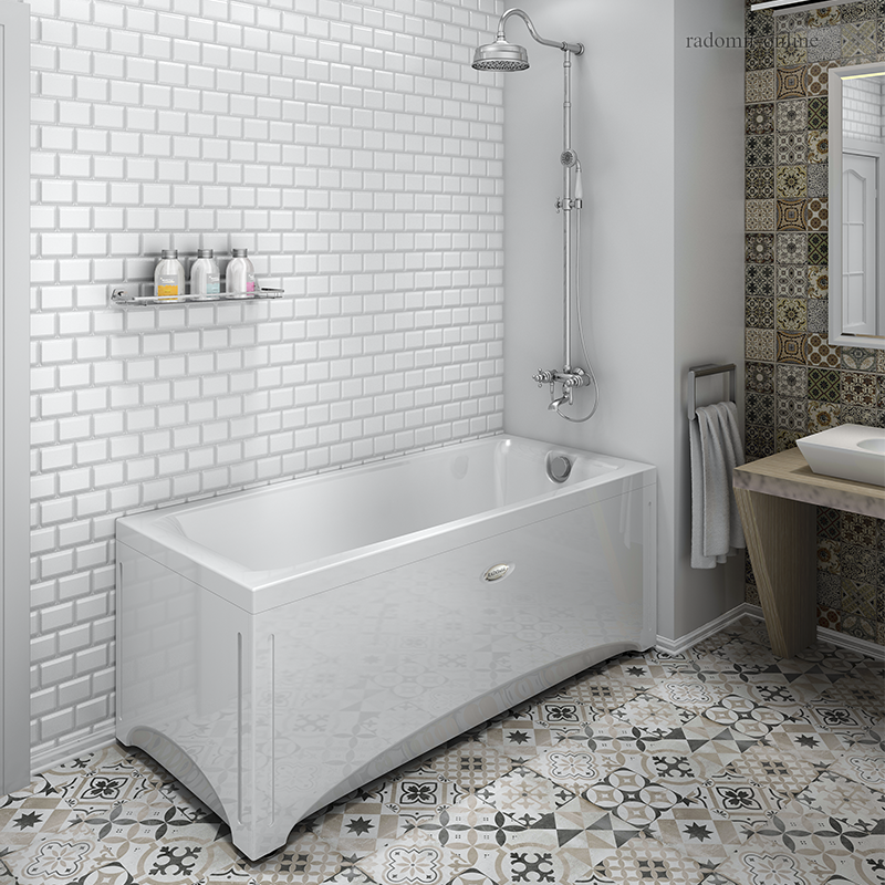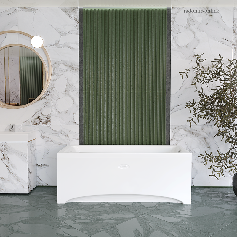 Ванна Radomir "Веста" из акрила прямоугольной формы в белоснежном цвете. Дополнительно комплектуется фронтальной и боковой панелью, которые декорированы плавными линиями по бокам, напоминающие ножки.
