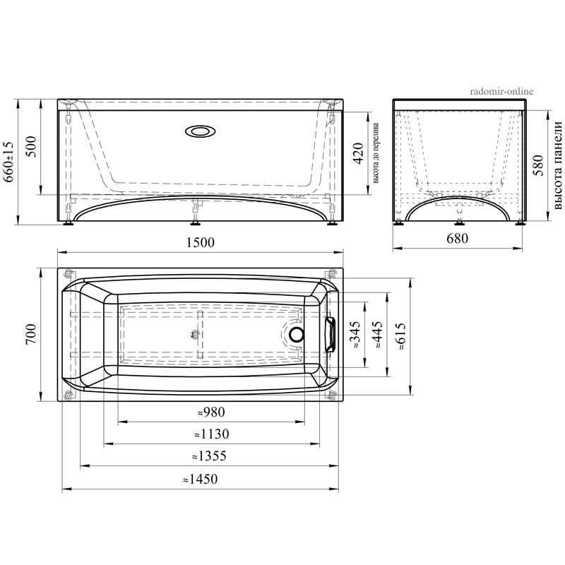 Теги: радомир, акриловая ванна, прямоугольная, пристенная, длина 150см, ширина 70 см, веста,