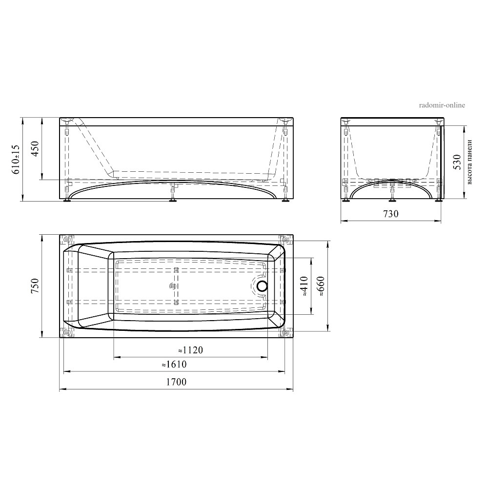 Теги: радомир, акриловая ванна, прямоугольная, пристенная, длина 170см, ширина 75 см, веста,