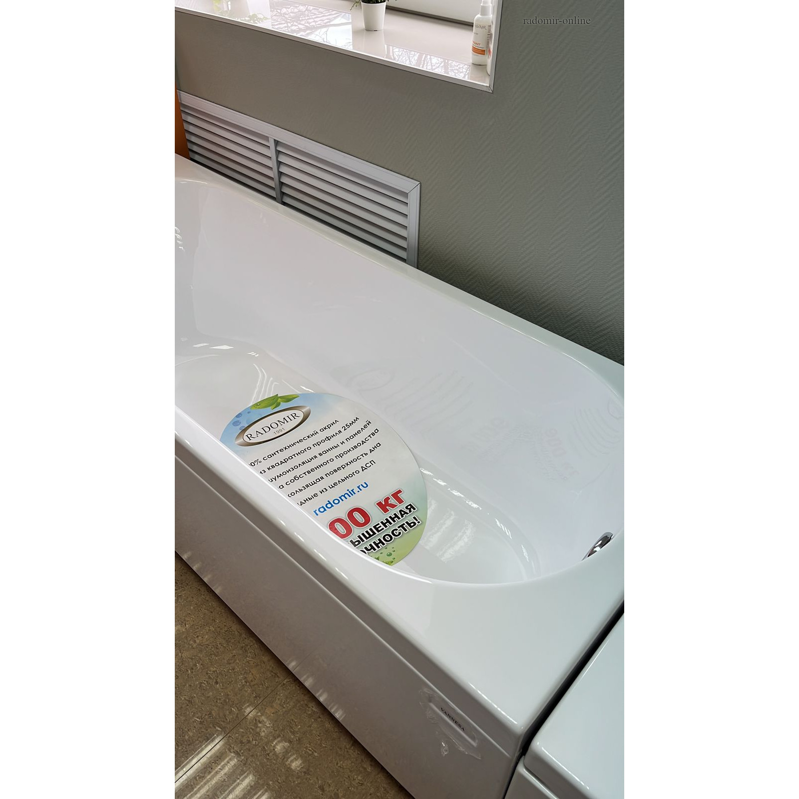 Модель Radomir Виктория от Radomir выполнена из 100% австрийского акрила Senoplast толщиной 4 мм. Акрил имеет антибактериальное специальное покрытие «AntiBac». Поверхность чаши обладает отличными теплоизоляционными свойствами. Благодаря этому вода в такой ванной остывает гораздо медленнее, чем в металлических аналогах.