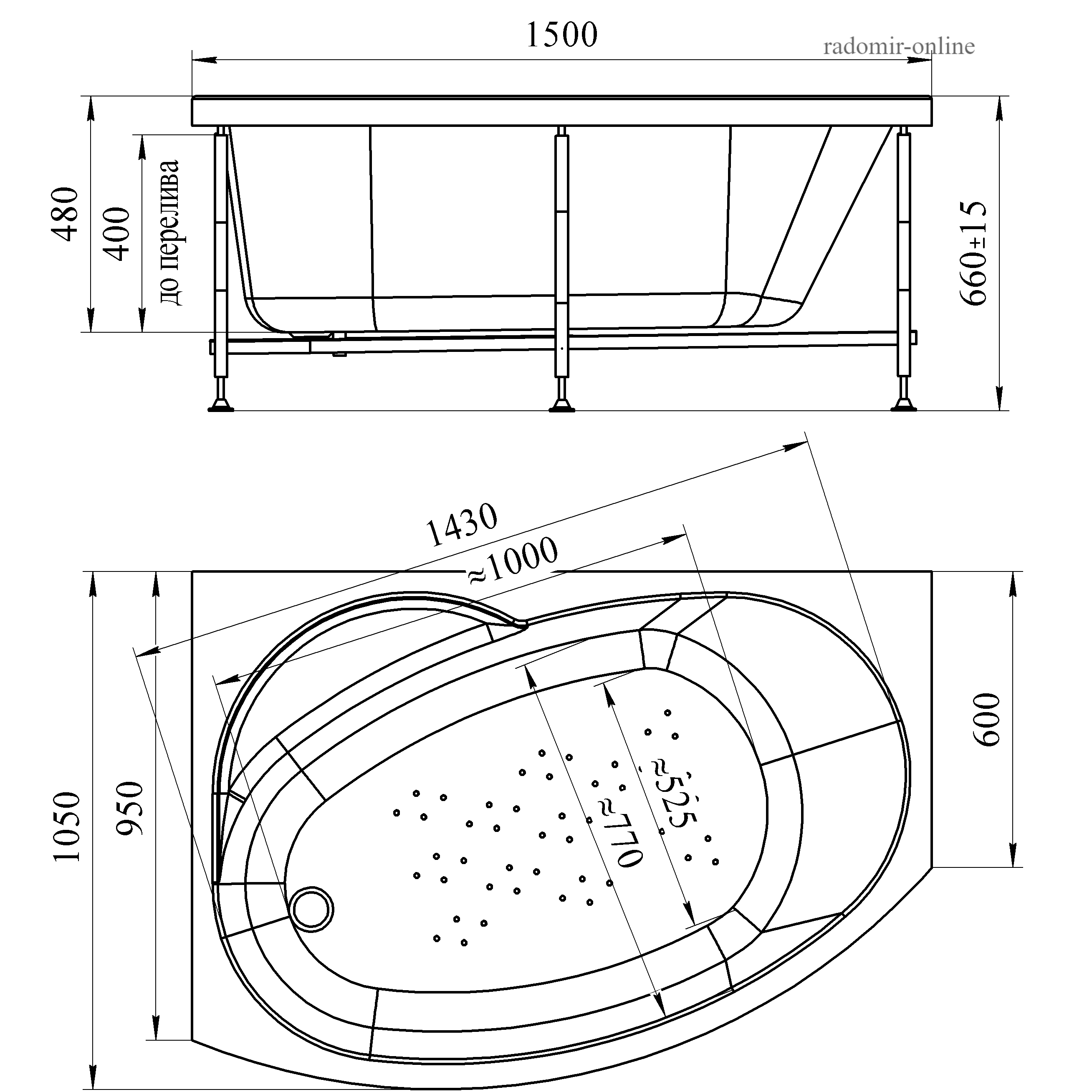 Radomir "Монти" 150x105 см – производство Россия (г. Ковров), акрил Senoplast толщиной 5 мм.