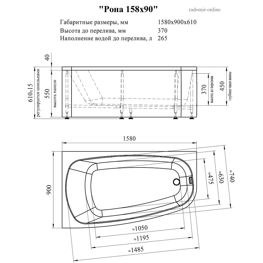 Radomir Рона 158x90 см левая – элегантная модель из прочного акрила для вашего комфорта.